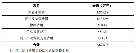电科蓝天本次发行募集资金总额164,493.90万元;扣除发行费用后,募集资金净额为157,916.14万元。本次公司公开发行新股的发行费用合计6,577.76万元,其中保荐承销费3,859.88万元。