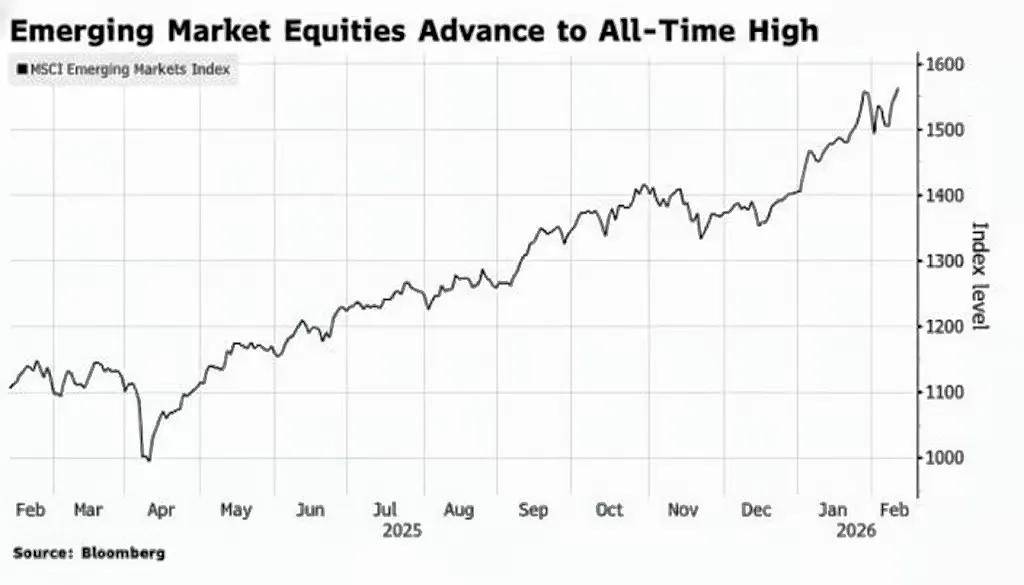 不止日韩股市,根据彭博社消息,本月MSCI新兴市场指数也已刷新历史新高。