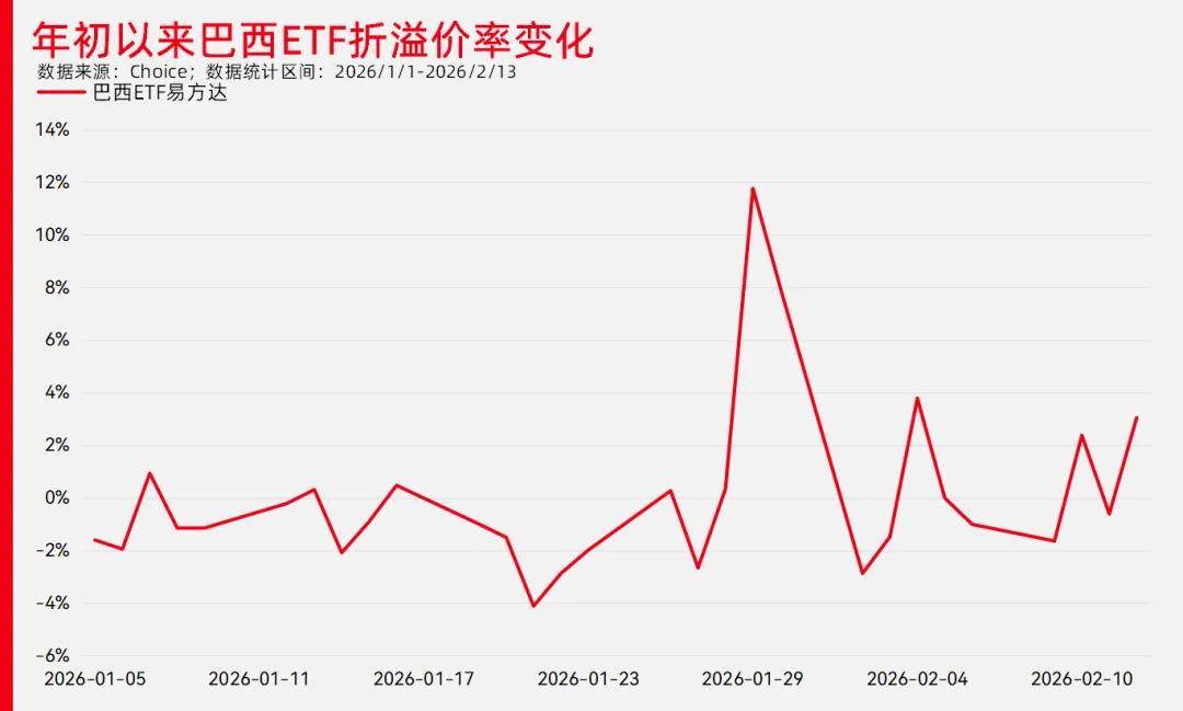我们从溢价率也能观察到巴西ETF的市场热度正在增长。年初至今,巴西ETF的溢价率由折价变为溢价并一度超过10%,目前也有约3%的高溢价率。