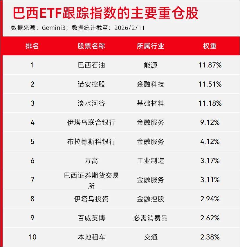 巴西ETF跟踪指数的主要成分股中不乏淡水河谷、巴西石油等国际资源巨头企业,它们的价值也进一步被市场认可。