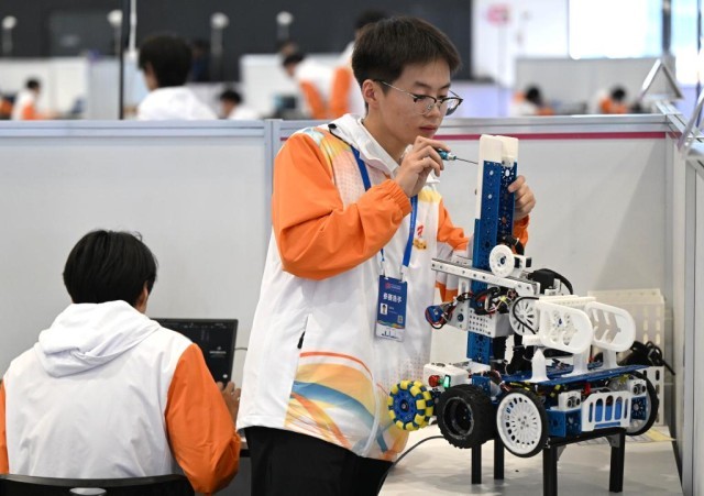 9月19日至23日,第三届全国技能大赛在河南郑州举行。这是选手在自主移动机器人项目比赛中。新华社记者 李嘉南 摄