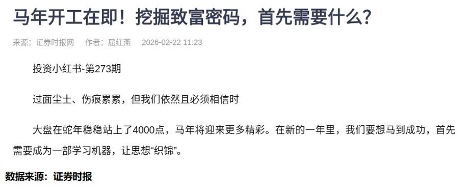 2026-02-23今日股市,股票推荐,大盘走势分析,股市资讯,股票入门,短线炒股/为广大股民提供及时准确的股市行情分析、热点股票推荐、最新利好政策解读与炒股实战经验,帮助你把握投资先机、实现财富增长!兄弟们,最近看了一篇关于投资大师的深度报道,里面说巴菲特和芒格能几十年如一日创造稳定收益,核心根本不是什么不传秘诀,而是把绝大多数时间花在学习和思考上,尤其是死磕那些经过时间检验的经典书籍,抓准投资的底层逻辑。就像巴菲特19岁读《聪明的投资者》才真正开悟,芒格更是被称为“长着两条腿的书架”,一辈子保持海量阅读的习惯。